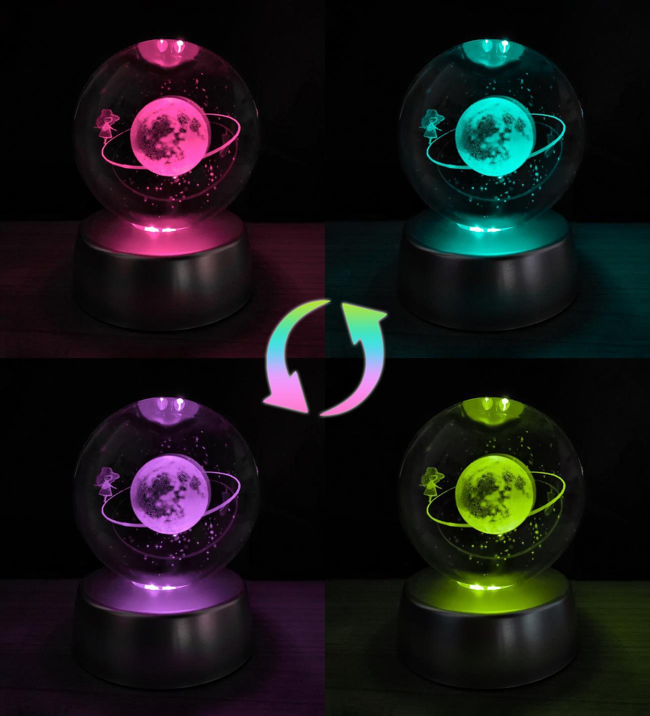 3D Samanyolu Temalı Satürnlü Kız Renk Değiştiren Işıklı Kristal Küre