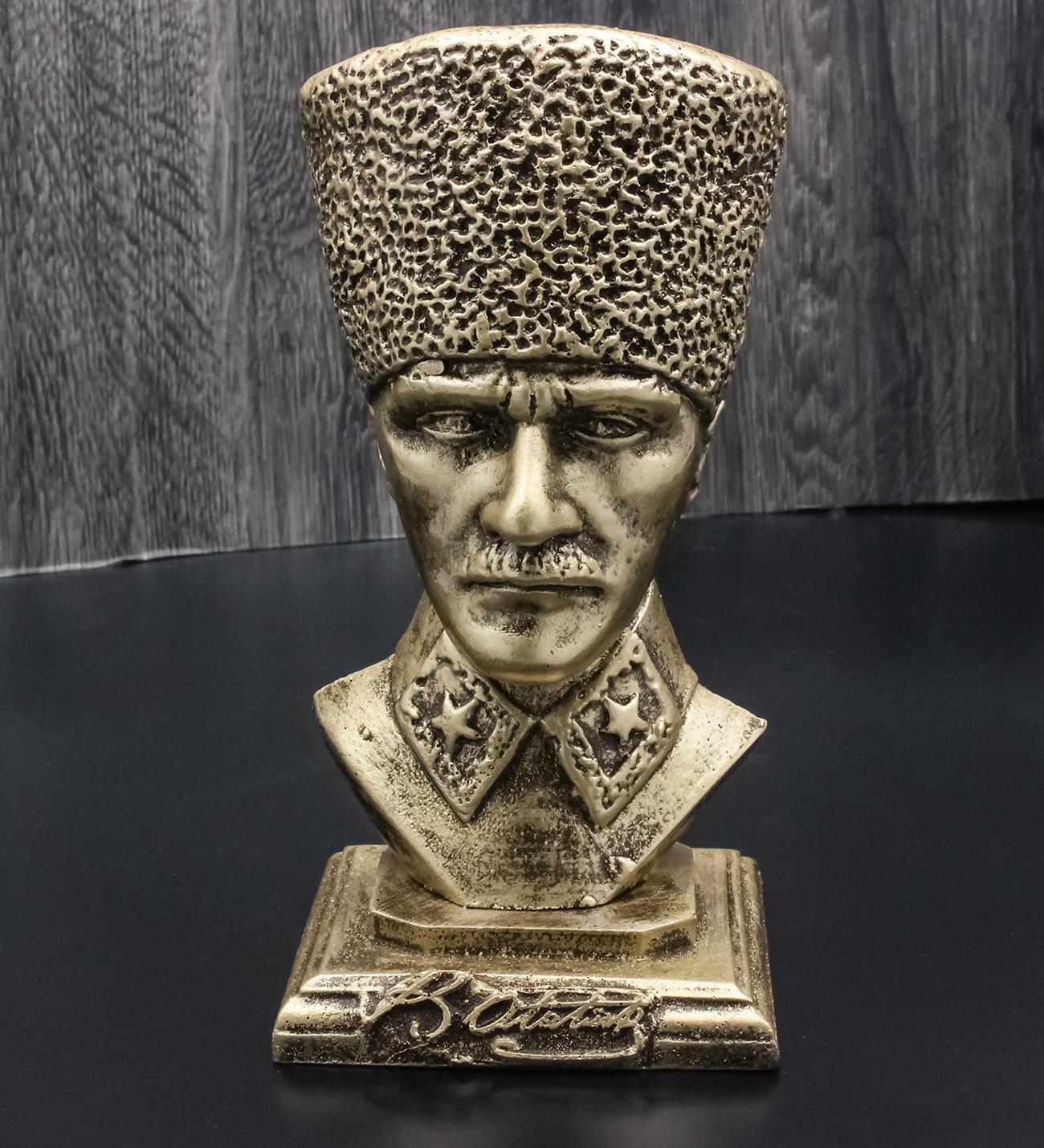 Dekoratif Gold Renk Polyester Mustafa Kemal Atatürk Büst Biblo Heykel Büyük Boy, Atatürk sevgisi ve saygısı olanlar için anlamlı bir hediye seçeneği de olabilir. Bu ürün, Atatürk'ün fikirleri ve ilkelerine bağlılığınızı göstermek ve onun hatırasını yaşatmak için harika bir seçenektir.