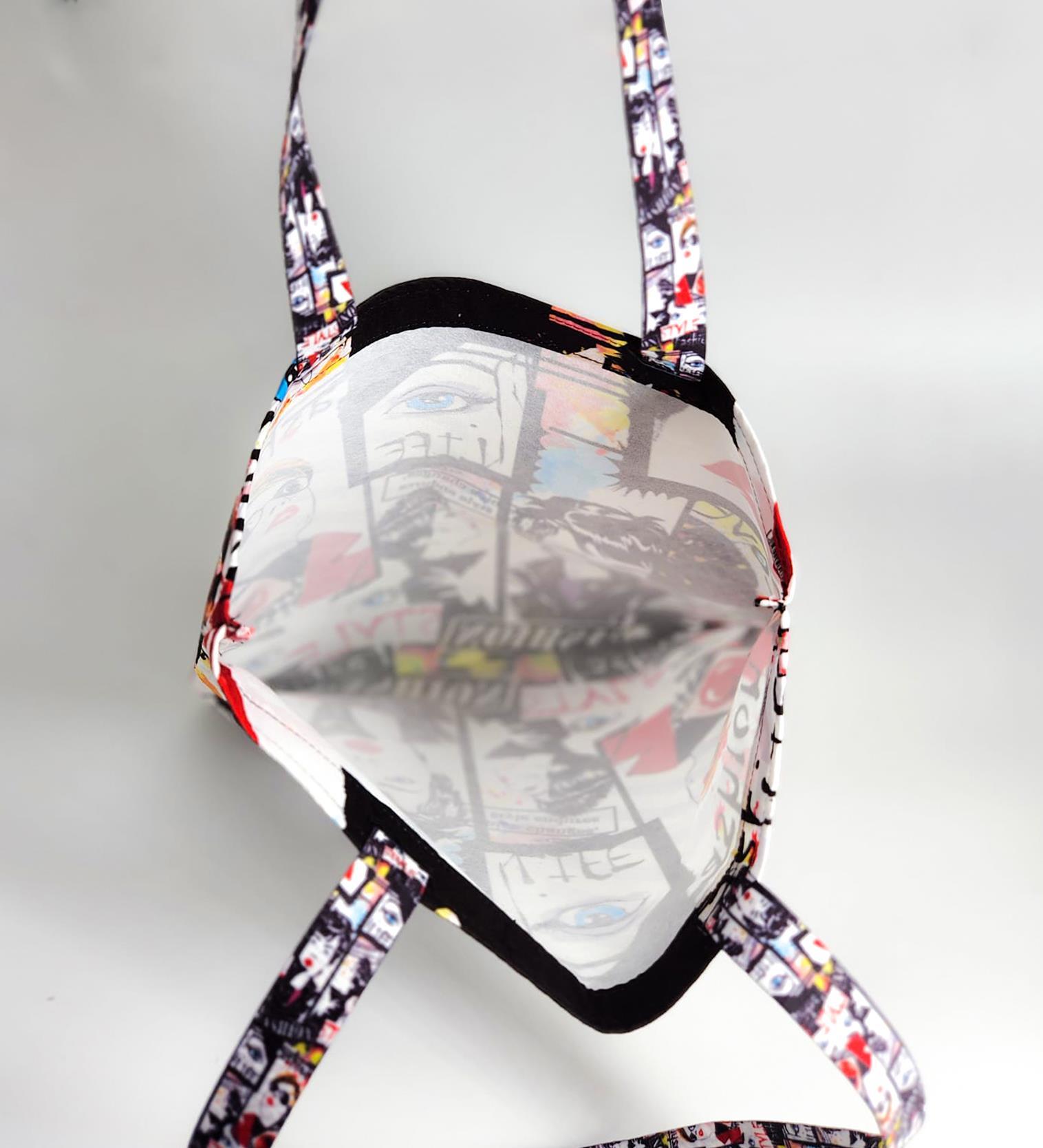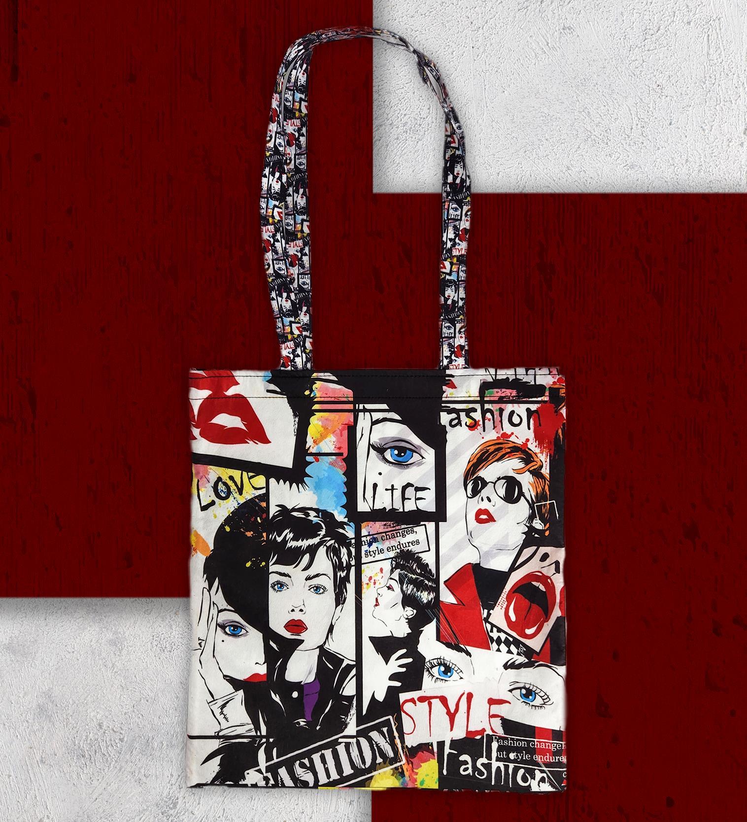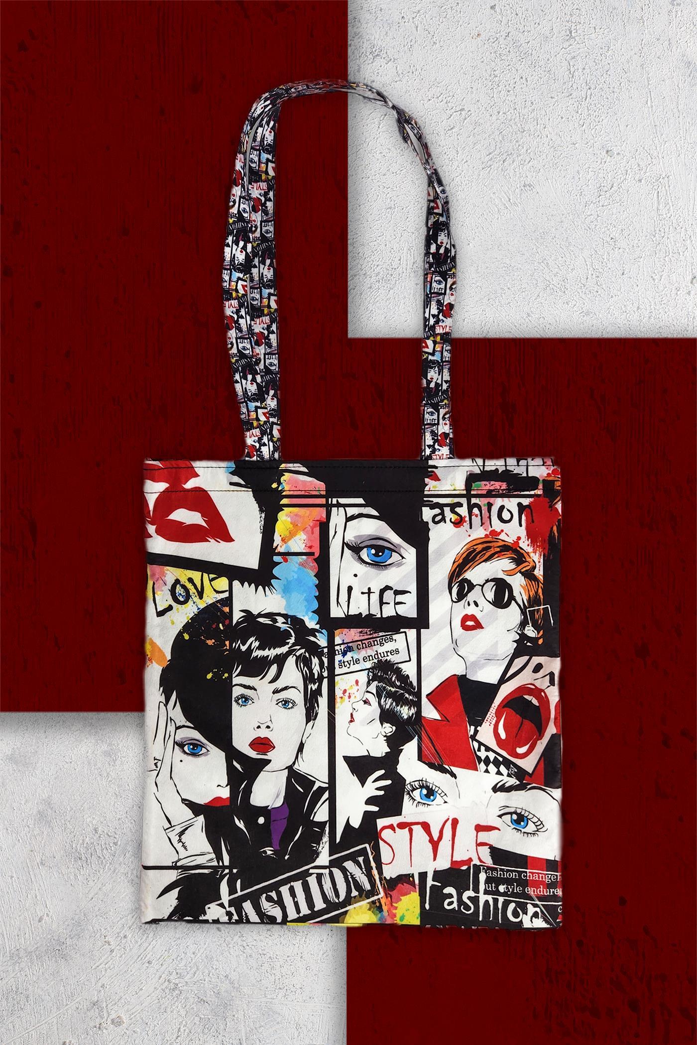 Dergi Tasarımlı Baskılı Kumaş Bez Çanta Tek Bölmeli Kol ve Omuz Çantası (Vega50364)