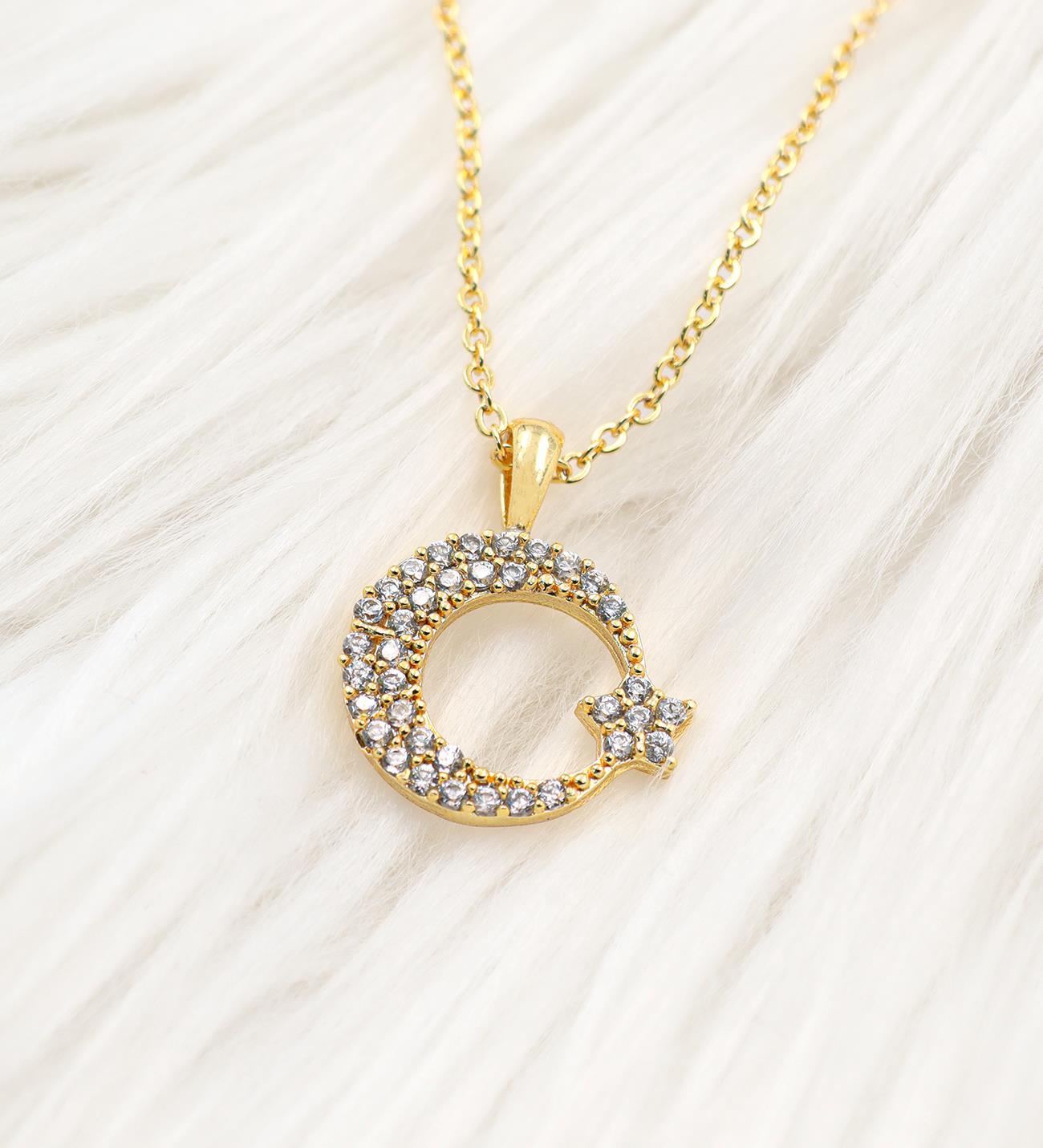 *Gold ay yıldız kolye kaliteli zirkon taşlarıyla sizi büyüleyecektir.*Kolye özel kutusunda gönderimi sağlanır.