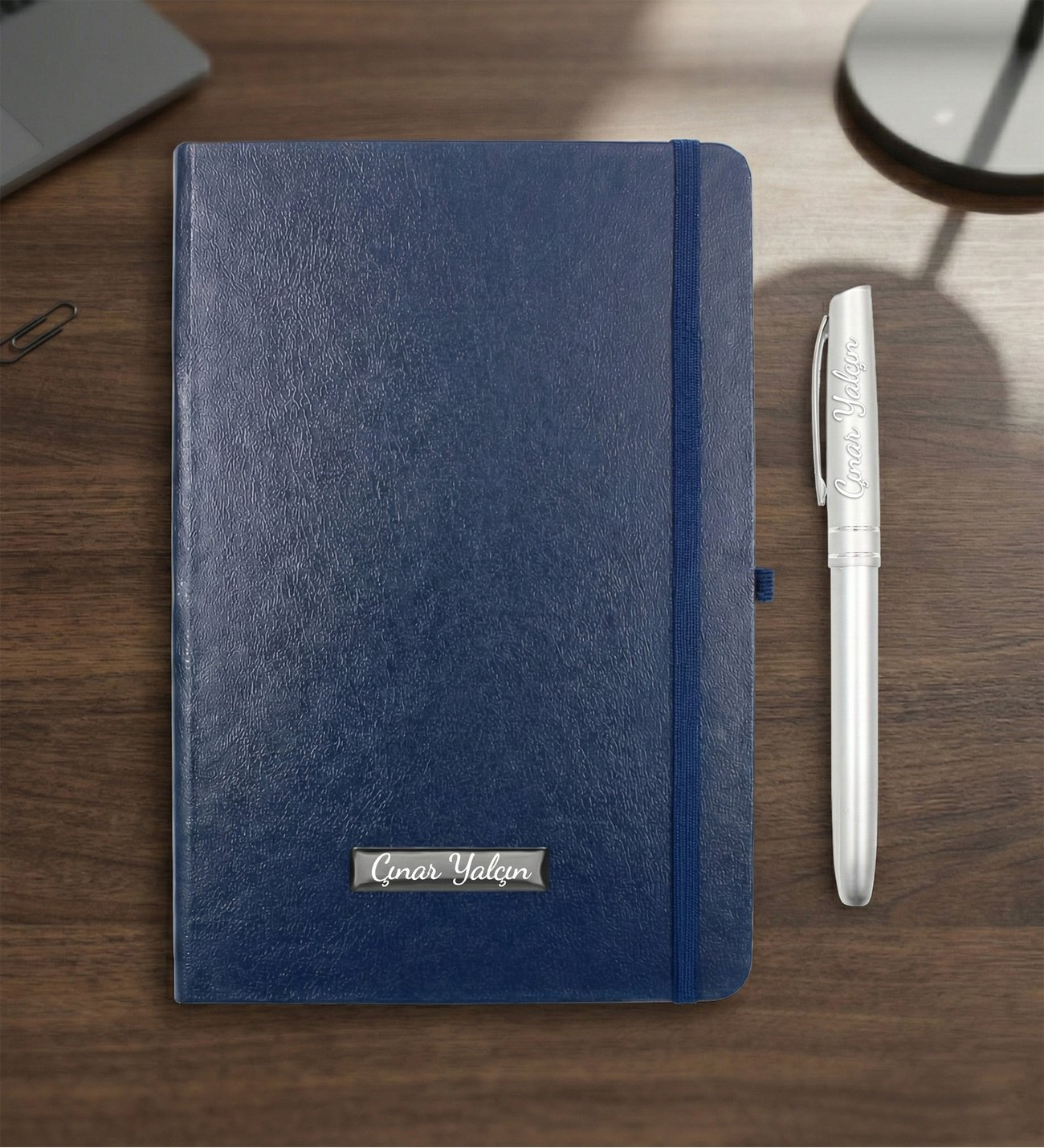 Set içerisinde yer alan isim baskılı defter, not almak, plan yapmak ve günlük kullanım için ideal bir yardımcıdır. Üzerine uygulanan isim baskısı ile hem motivasyon artırıcı hem de kişisel bir kullanım sunar. Sade ve şık tasarımı sayesinde ofis ortamına ve günlük hayata kolayca uyum sağlar.