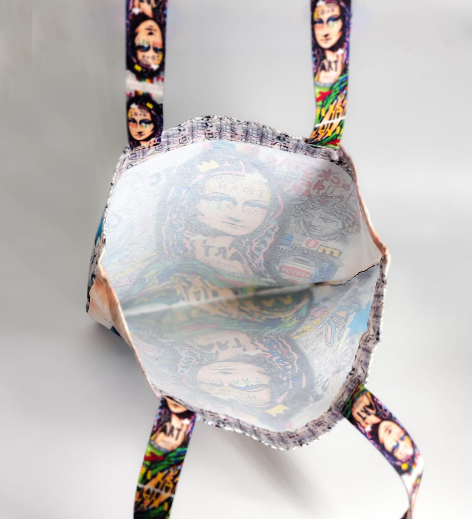 Mona Lisa Tasarımlı Baskılı Kumaş Bez Çanta Tek Bölmeli Kol ve Omuz Çantası (Vega50361)