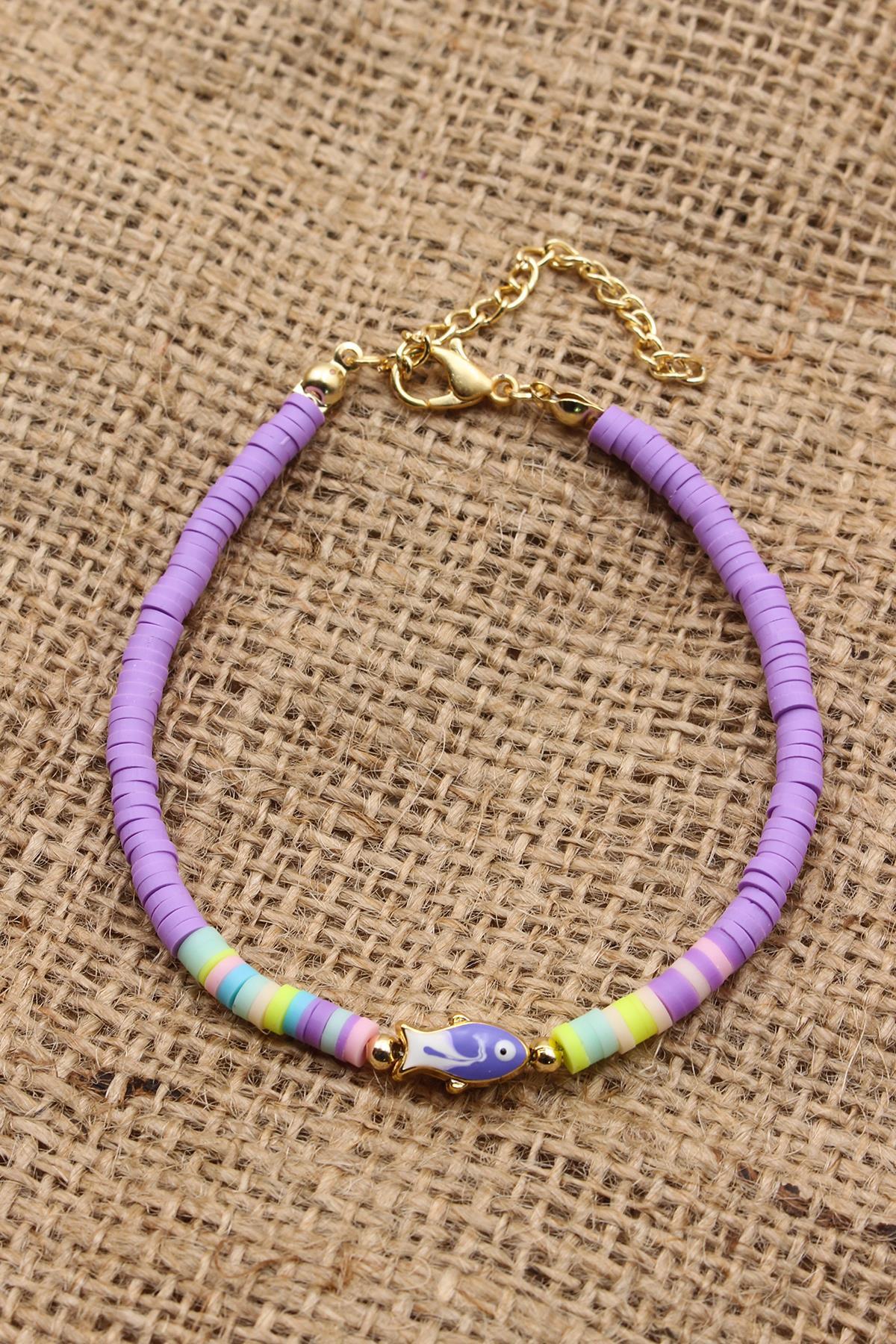 Etkileyici Mor Renkli Balık Model Fimo Bileklik
